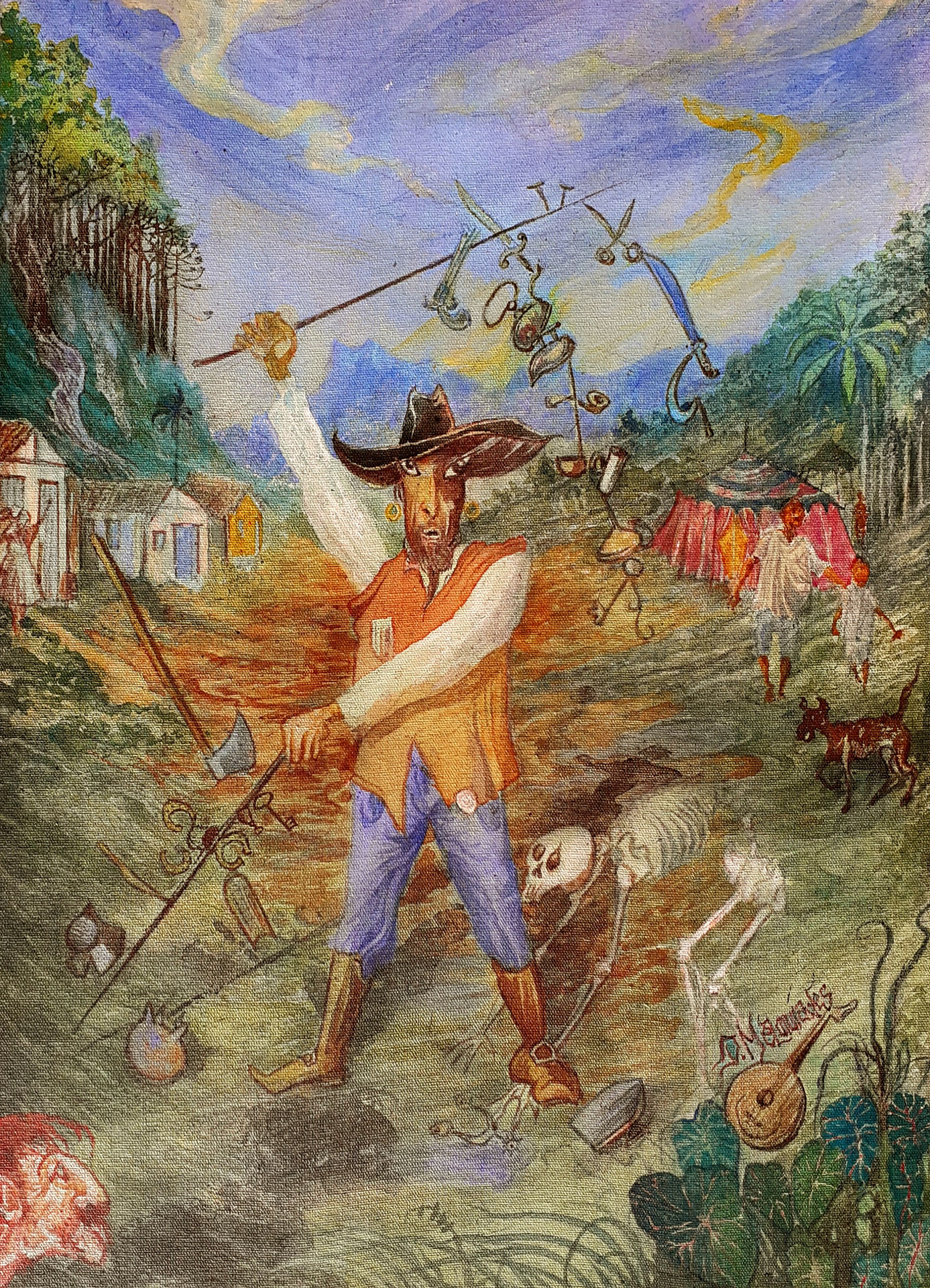 Nesta exposição Daniel Ribeiro Assina D.Melquíades, seu mestre cigano na grande busca. “Todas as coisas têm vida própria basta lhes despertar a alma”.